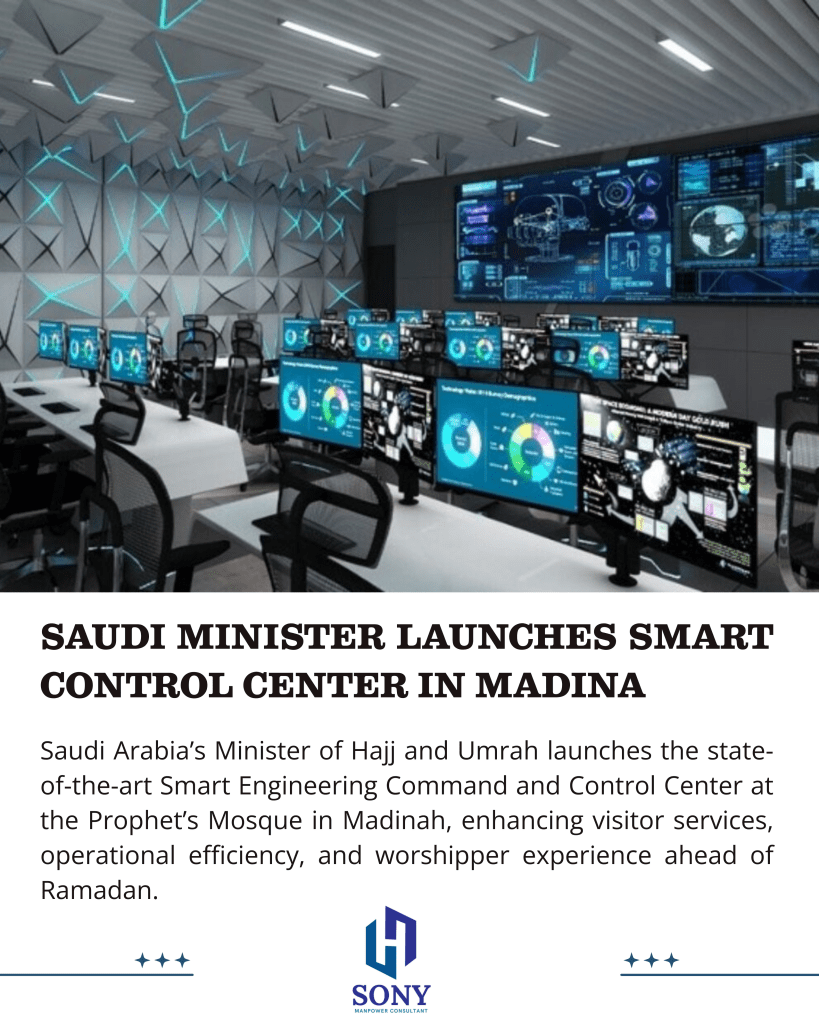 The Smart Engineering Command and Control Center is a state-of-the-art facility launched at the Prophet’s Mosque to monitor, manage, and enhance all operational services using advanced digital technologies and real-time data systems.